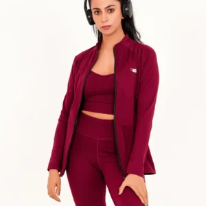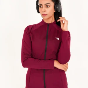 Ladies Compression Zipper – Maroon | Gym Wear Women