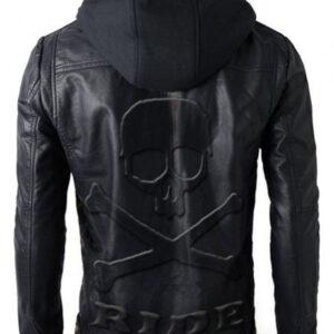 Brando Biker Leather Jacket with Hoodie – Skull Embossed Logo