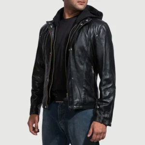 Highschool Black Hooded Leather Jacket for Men – Classic Casual Style
