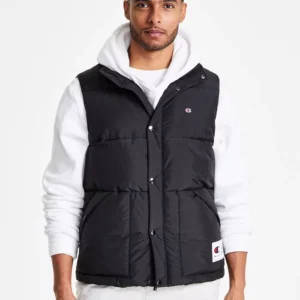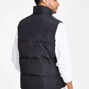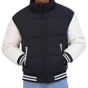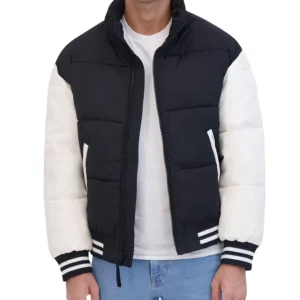 Men’s Athletic Leather-Sleeve Puffer Jacket