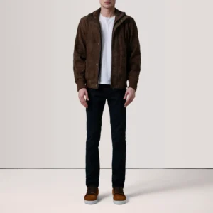 Lester Men’s Brown Suede Leather Bomber Jacket – Classic Minimal Style