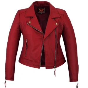 Women’s Burgundy Lambskin Motorcycle Leather Jacket – Slim Fit Genuine Biker