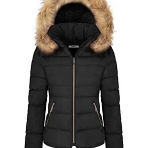 Women’s Winter Puffer Jacket – Quilted, Fleece Lined Coat with Faux Fur Hood
