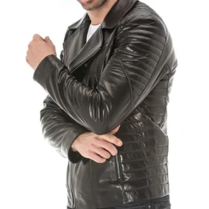 Vanguard Men’s Black Genuine Sheepskin Leather Biker Jacket – Classic Moto Style