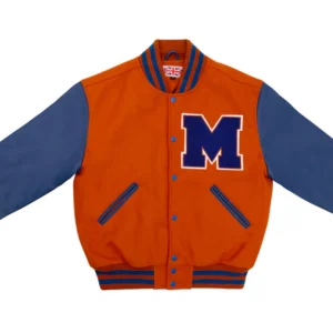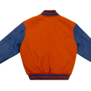 Men’s Pumpkin Orange & Bright Royal Varsity Jacket – Classic Wool & Leather Letterman Bomber