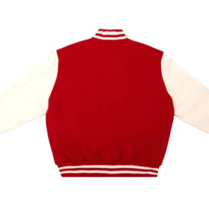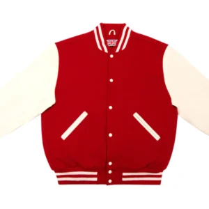Stylish scarlet varsity jacket for men.
