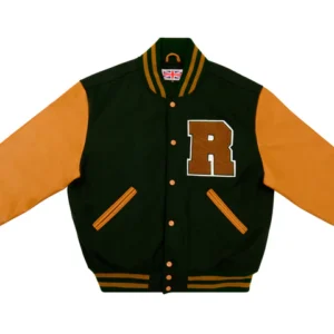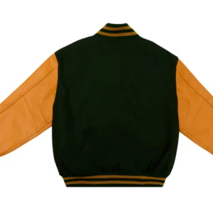 Stylish Dartmouth Green and Old Gold varsity jacket for men.