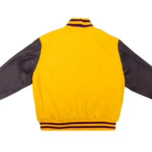 Stylish bright yellow and purple varsity jacket for men.