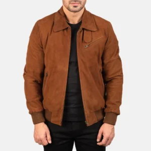 Tomchi Men’s Classic Tan Suede Leather Bomber Jacket
