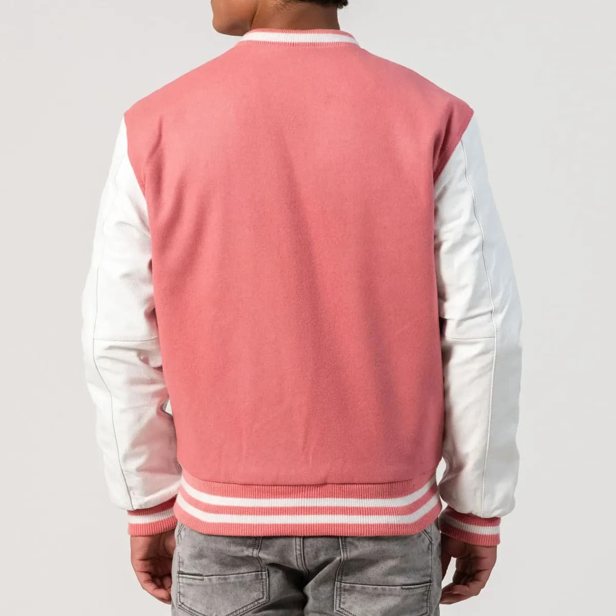 Varsity Jacket by Ninja Clothings: Pink Wool & White Leather-where style meets perfection
