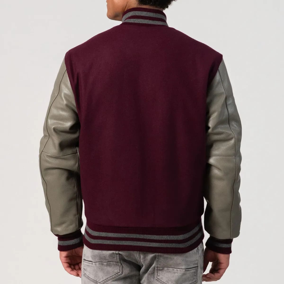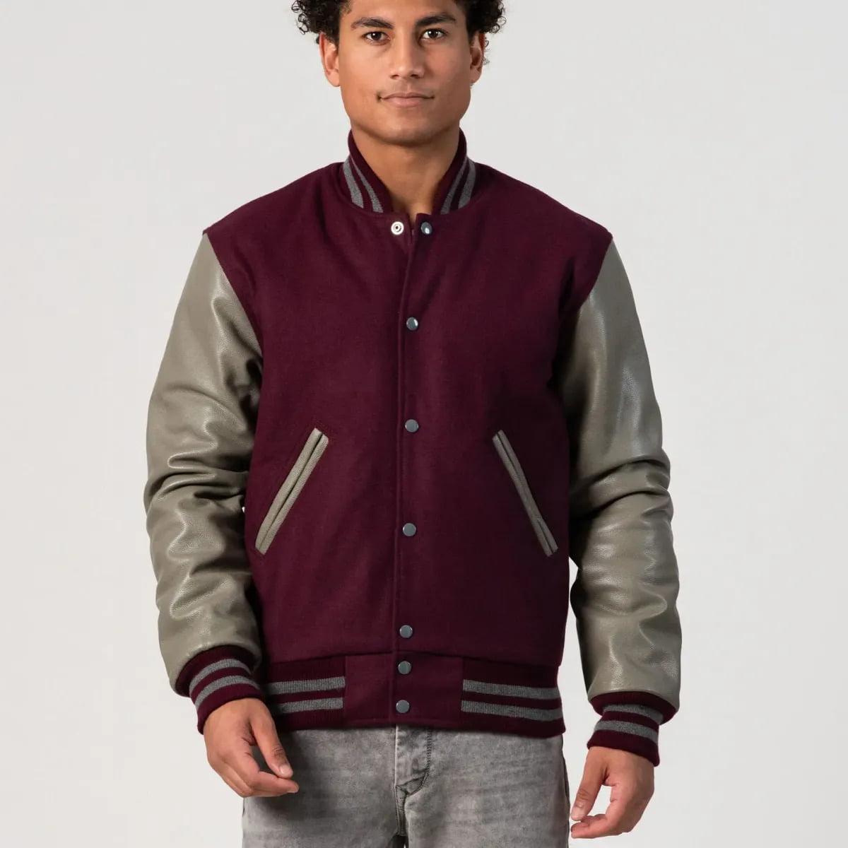 Crimson Body & Charcoal Leather Sleeves Varsity Jacket