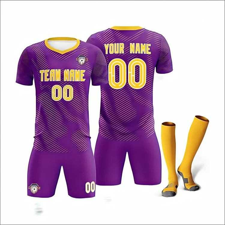 The jersey is engineered with moisture-wicking technology that keeps sweat away, while the breathable mesh panels ensure maximum ventilation during intense matches. The shorts provide a flexible fit with reinforced stitching, allowing freedom of movement for sprinting, kicking, and tackling. Matching socks complete the professional look while offering cushioned support for long hours of play.