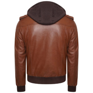 Men’s Wing Hooded Brown Bomber Leather Jacket – Stylish & Durable Outerwear