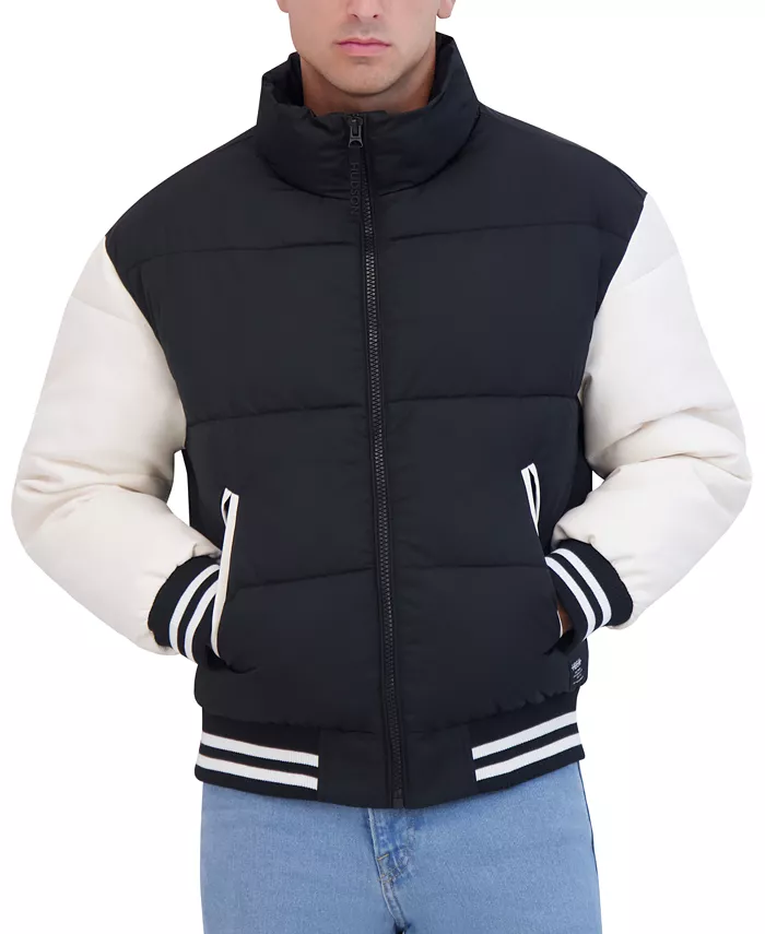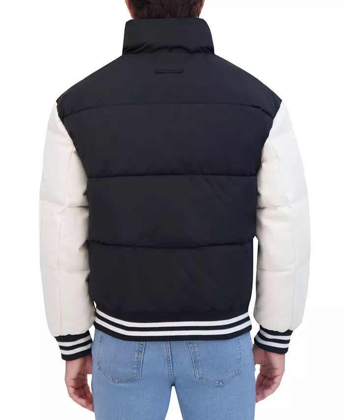 Men’s Athletic Leather-Sleeve Puffer Jacket