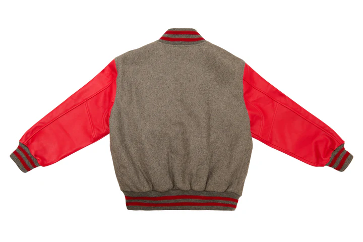 Stylish varsity jacket in light oxford grey and scarlet red