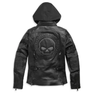 Women’s Willie G Auroral II 3-in-1 Genuine Leather Riding Jacket – Skull Graphic Biker Outerwear