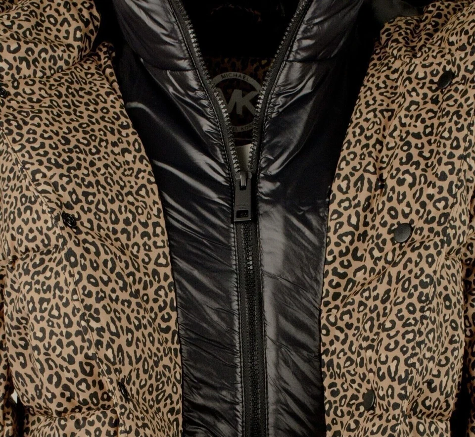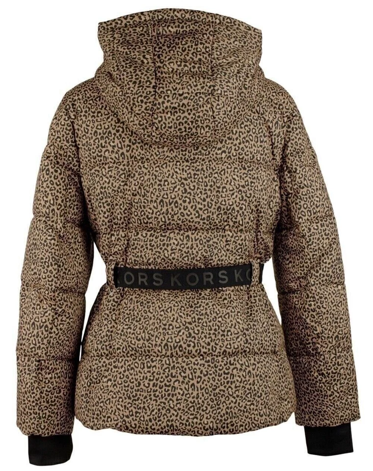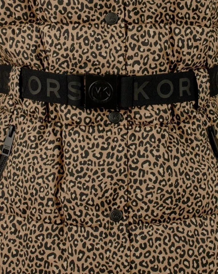 Michael Kors Women’s Hooded Leopard Print Puffer Coat with Belt