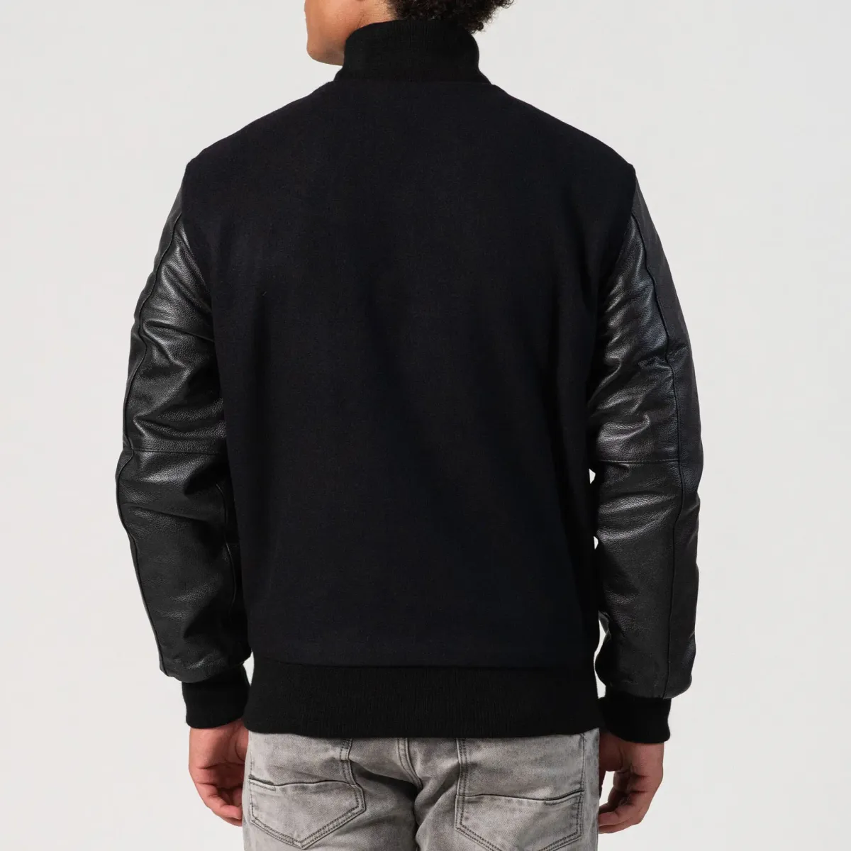 Classic varsity letterman style with ribbed cuffs