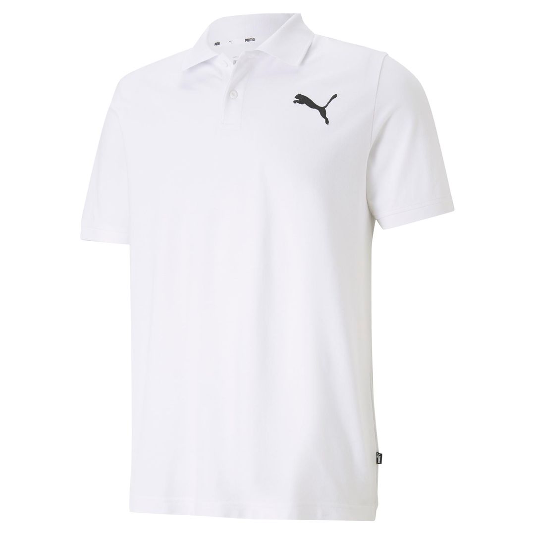 PUMA Men’s ESS Pique Polo Shirt – White & Cat Logo