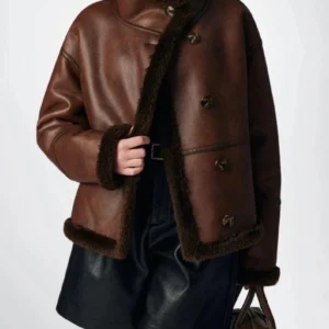 Women’s Brown Shearling Leather Jacket – Real Sheepskin Aviator Bomber Flight Coat