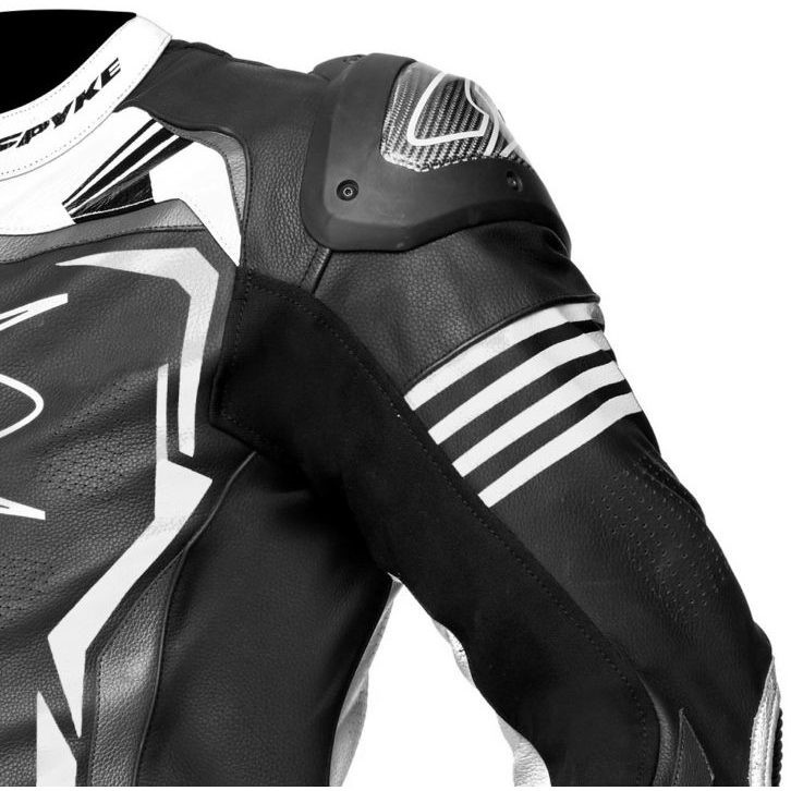 Spyke Assen Race 2.0 Full Leather Motorcycle Racing Suit Black White
