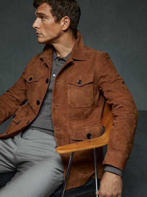 Tobacco brown Clock Wild Suede Utility Jacket