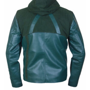 Men’s Arrow Green Leather Jacket with Removable Hood – Stylish & Versatile