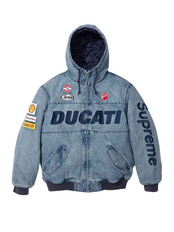 The Blue TLJ Supreme Ducati Hooded Biker Jacket delivers the ultimate combination of racing-inspired design and contemporary street fashion. Expertly handmade with high-quality denim and reinforced stitching, this jacket ensures long-lasting wear while maintaining comfort and breathability.