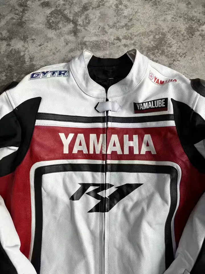 Yamaha Racing White R1 Motorcycle Cowhide Leather Biker Jacket | Premium Quality